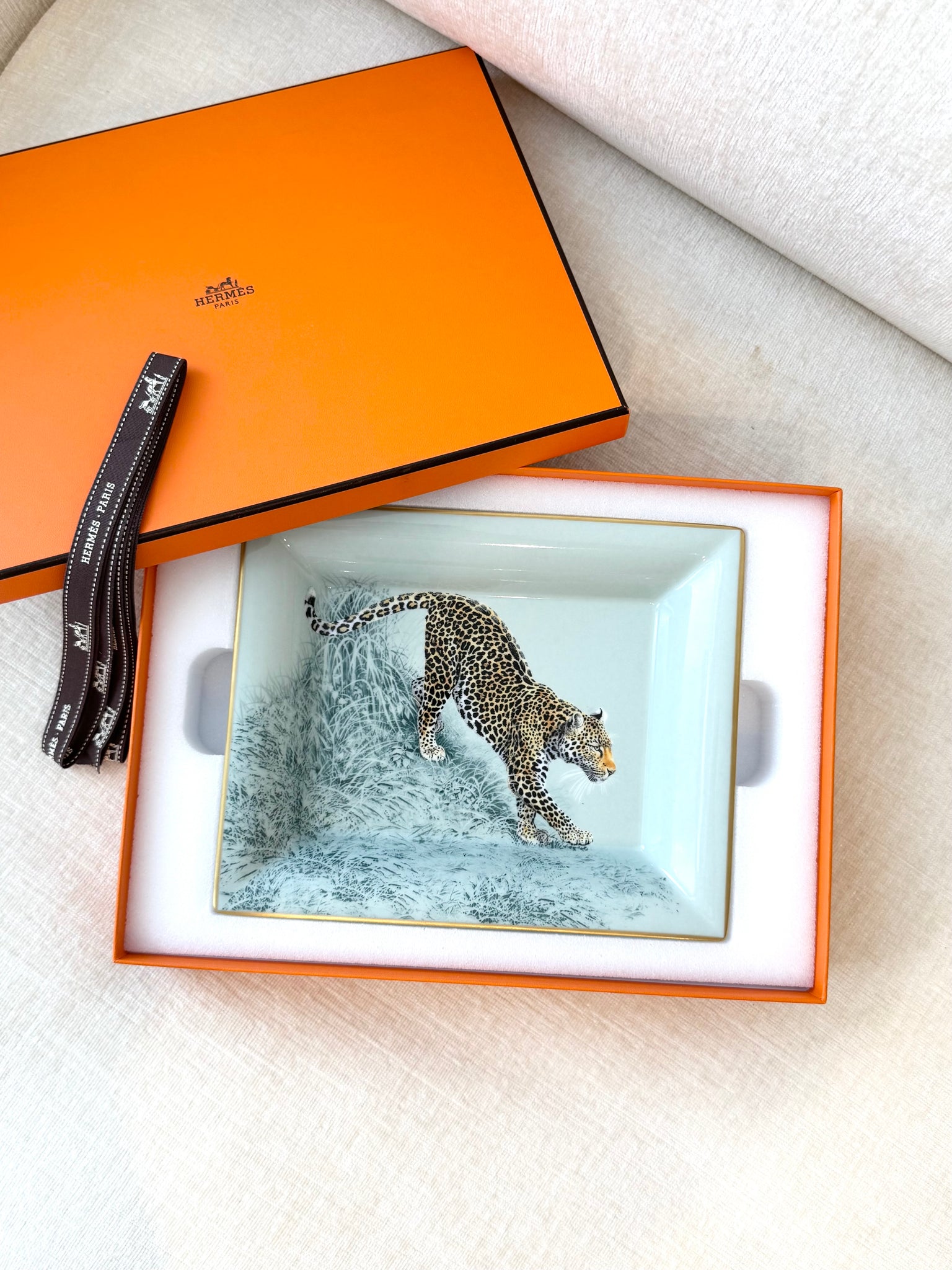- Change tray in porcelain with velvet goatskin base