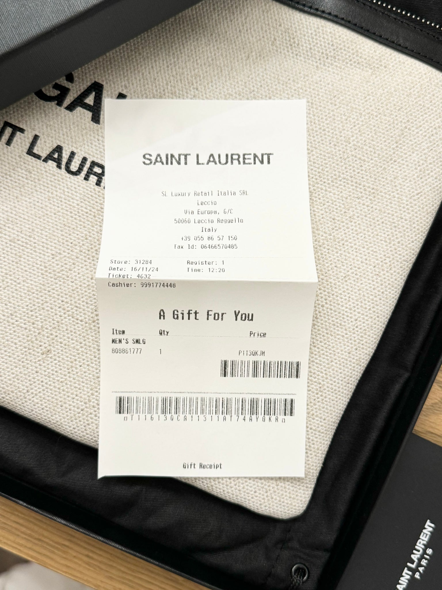 - Comes with: box, dust bag, care cards, paper gift receipt