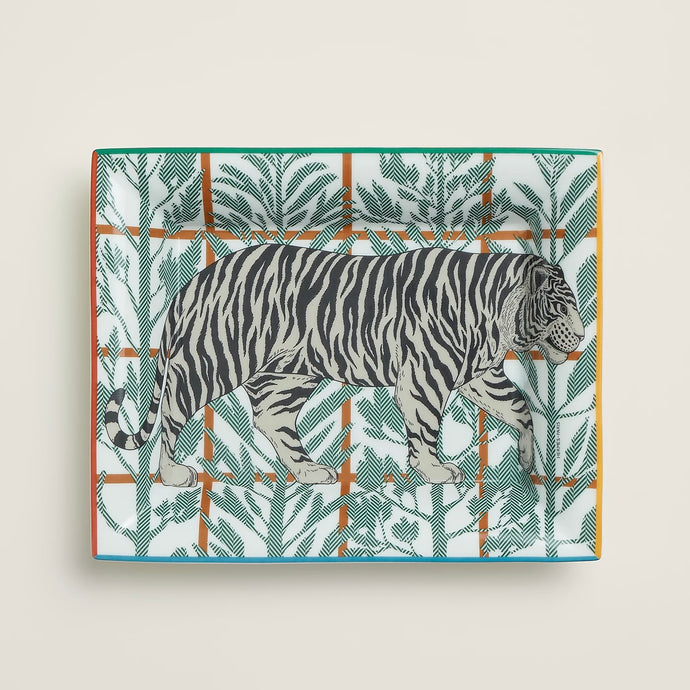 HERMES Tigre Altai Porcelain Change Tray / Marine / Vert Menth